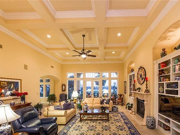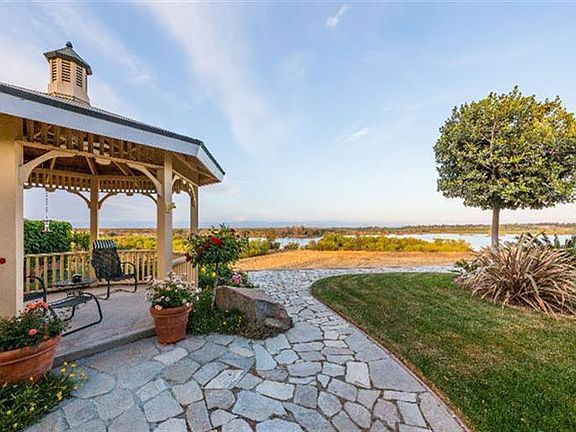 In custom development BELLIVIERA. Incredible views of the Bluff & the State water reserve! It's like having your own lake! Fully paid for SOLAR panels! This pristine, single story,gently used custom home has the ideal floor plan--a large great room overlooks the Water and Bluff. Built-in entertainment center, coffered ceilings, spacious and stylish! The kitchen is a cook's dream, with dual ovens, warming oven, SubZero fridge, wine fridge, center island, lighted cabinets, gas cooktop, large walk-in pantry and big informal eating area. Formal DR is gorgeous, with built-in lighted cabinets. Adjacent to kit is one BDRM/full BA. On the other side of the house are 3 more BDRMS/2 full BA. The master has stunning views of the water and bluffs, and a large closet, great bathroom! Outside is a charming gazebo with lighting and fan. Built-in barbeque, gorgeous landscaping with many flowering plantings, raised bed garden. 3 car garage w/ storage galore and tankless water heate