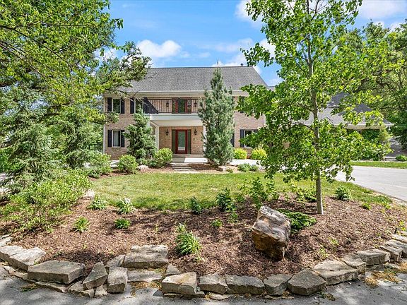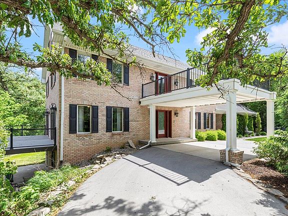 This executive residence features 20 acres with trails amongst the trees. The entrance has gated access and a blacktop drive to a 2.5 story brick home. Upon entering you will find a dedicated office with fireplace, dining room with built in cabinet and an open concept family room with fireplace to the fabulous chef's kitchen, pantry and coffee bar completes the 1st floor. Four bedrooms and two bathrooms on the 2nd floor with a primary suite and bathroom with a Japanese soaking tub. The 3rd story has a large open area, bedroom and full bathroom. The basement has 1 bedroom, full bathroom, family room, kitchen all to a walkout patio. A resort style salt water pool heated, detached garage with heat/ac. All this and more awaits you on this property with expansive views and privacy!