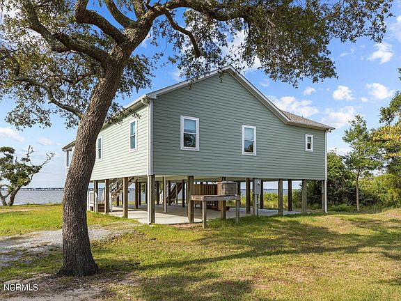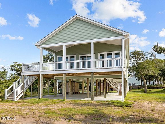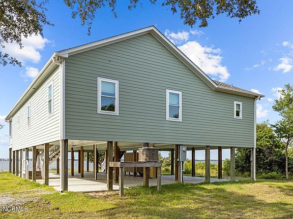 You will love the layout of this Emerald Isle home built in 2022 setting over 100' on the pristine waters of Bogue Sound. This 3 bedroom, 3 bath, one-level cottage offers a large multi-purpose room with laundry area, a private office, and a grand great room with panoramic views across Bogue Sound. All 3 bedrooms enjoy walk-in closets, and a state of the art kitchen offers electric cooktop, wall oven & microwave, deep well farm style basin, dishwasher, large refrigerator and a beverage cooler in the work island to please any dining event or gathering. LVP flooring runs throughout, except for principle bathroom that is tiled. The great room opens to a soundfront covered porch area that opens up to a wrap around deck stretching back to the principle bedroom suite. Convenient covered parking under the house with covered entry stairway into home. And a large enclosed out door shower which is a must when coming off the water or returning from the beach. Nestled at the back of a short cut-de-sac this island home enjoys a private setting where nature abounds. A bulkhead runs along the water's edge of Bogue Sound allowing easy kayak and fishing access, or add a dock to accommodate a boat for longer travels down the ICW! Would make an excellent vacation rental, 2nd home or primary residence. Go & Show status makes it easy to preview this home anytime.