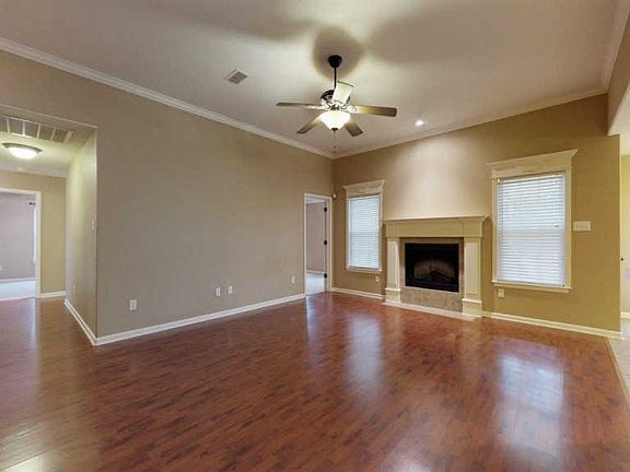 Beautiful 4 bedroom, one-level home on Emerald Mtn. Open floor plan. Kitchen has large pantry, tile floors, & stainless steel appliances: new dishwasher & garbage disposal- 2016; new microwave 2014. Laminate floors, crown molding, & fireplace in main living space. Neutral paint throughout. Split BR floor plan-Large master bedroom & bath w/ jetted tub, separate shower, & big walk-in closet. Entertain on the back patio & enjoy the huge level fenced yard w/ green space behind. Located near outlet mall & I-30.