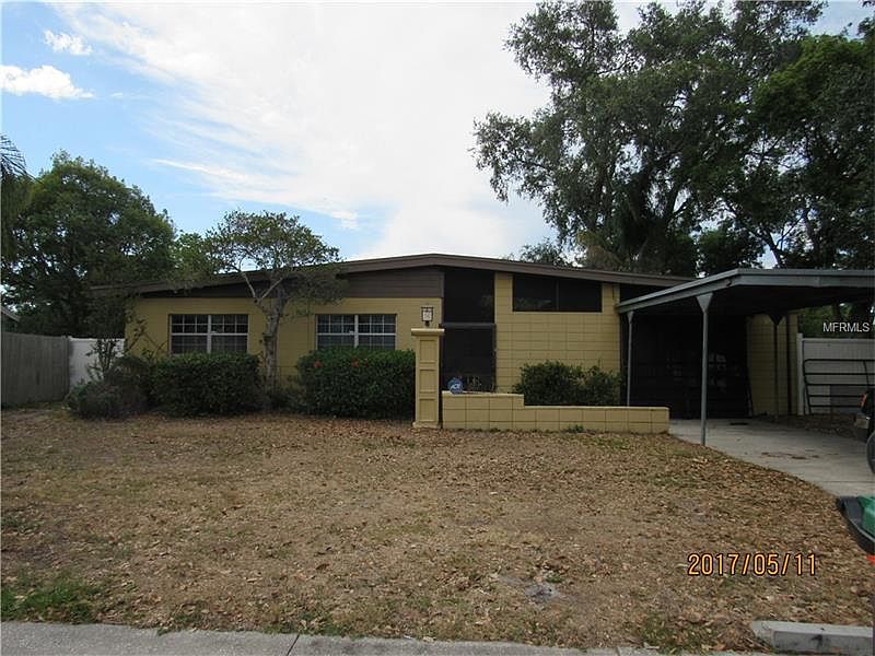 Back on the market. Buyer could not get financing. Come see this lakefront,pool home located close to shopping and dining. This home is a rare find featuring new interior paint, Curly Maple Hardwood cabinets, Screened porches & a open floor plan. All floors are ceramic tile with no carpet to worry about. Relax in the back by the pool surrounded by your pool enclosure. The main bath has been remodeled and a 1/2 bath added in the porch/patio area. The outside condenser unit has been recently taken but the owner will replace. As is contract only.