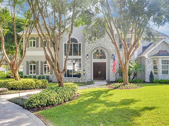 Absolutely stunning, completely remodeled Windermere home with a detached remodeled guest or in-law suite. Covered breezeway to garage and guest house. This 6 bedroom and 5 ½ bath home sits on .87 acre with spectacular lake views. Located in Sunset Bay, a community of upscale, custom built homes with access to Lake Down. Gourmet kitchen features Sub-Zero refrigerator & freezer, Wolf stove and countertop range, and 2 dishwashers. Spacious master suite located on the first floor with huge master bathroom & customized walk in closets. Bonus/office/man-cave upstairs opening to large covered porch area overlooking backyard and pool. Covered verandah is perfect for entertaining with outdoor kitchen and fireplace. Resort style backyard with a giant water-slide and lots of room for entertaining and completely private. Two laundry rooms, one upstairs and one downstairs. Roof is a 50 year shingle, which is a class 4 impact shingle. Home has natural gas. This home is better than new with everything remodeled by professional designers.