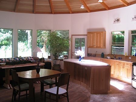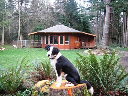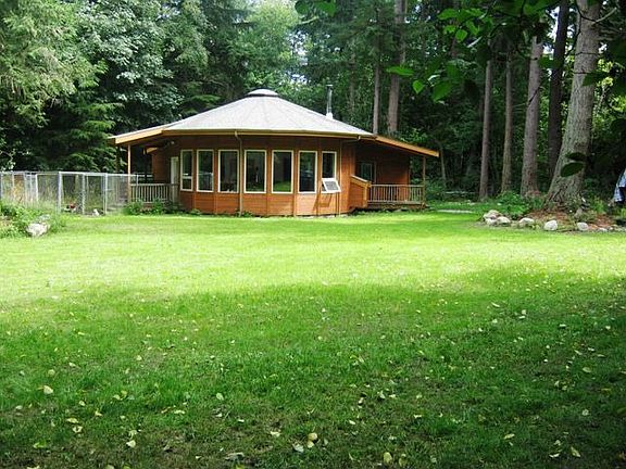 Unique Guemes Island summer getaway or beautiful cozy year round home. Architecturally designed round home w/unique 16 cedar, high efficient ceilings & Douglas Fir beams. Enjoy bird watching from this secluded & quiet .89 acre setting surrounded by beautiful trees yet only a 5 minute walk to the nearby beach. Magical light filled home w/numerous skylights & windows galore. Open concept great room w/wood stove, kitchen & dining area. Custom western maple kitchen cabinetry. Fully fenced w/shed.