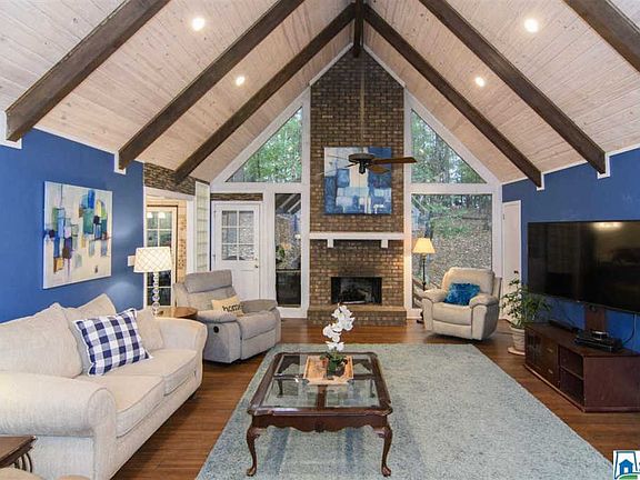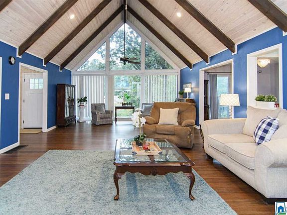 Wonderful family home in Oak Mountain Schools. Great stately curb appeal w/custom landscaping, new siding, windows, Craftsman front door & exterior paint. Welcome to Great room just beyond the foyer! EXPANSIVE WHITE-WASHED WOOD CATHEDRAL CEILING w/dark beams & floor to ceiling brick fireplace. HUGE ROOM for large family & friends gatherings w/windows overlooking front & back yards. New wood plank floors. Kitchen w/white cabinets & large openings to great room. Eat-in kitchen w/granite counters & new sliders to screen porch where the morning sun peaks through the trees. Dining room also attached to kitchen. Bedroom wing: Master bedroom & bath overlooking the backyard. Two more bedrooms w/good size closets! Hall full bath w/separate toilet/shower room & laundry closet. Downstairs: Great big Den & three more rooms- office/exercise playroom etc. Rustic Full Bath too! Fenced gardens on the right side of driveway w/perfect amount of daily sun! New HVAC in 2018 . New siding, windows & paint.