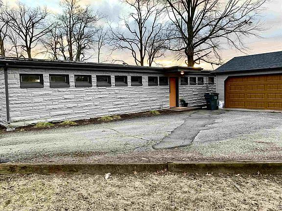 This unique home sits in a quiet neighborhood in the Delta School district and is a rare find in Muncie! Built in the Frank Lloyd Wright Prairie Style, this home features an open concept with a large Living Room and wood burning fireplace, 3 nice sized bedrooms, newer roof on both garage and house (2018), new HVAC System in 2018, and some new windows in 2018. A new well tank and water softener were installed in 2020. There is luxury vinyl flooring throughout main living areas. The house is built to be very energy efficient with the larger windows on the south side of home allowing the winter sun to help heat the home. The smaller windows on the north side are meant to have less sun in the home in the summer to keep it cooler. The home also has a large 2 1/2 car garage with plenty of room for storage. The seller pays for ADT security alarm system which can be taken over by the buyer. The large backyard is fenced. Low Taxes!!