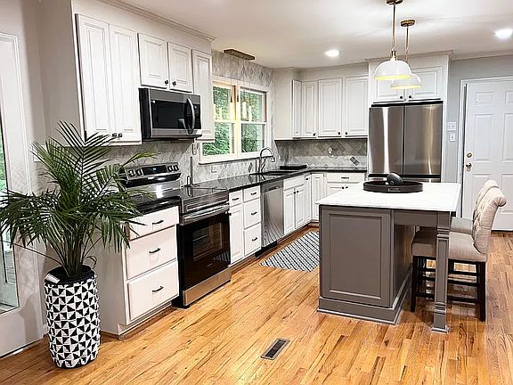 The house has a brand new washer, dryer, refrigerator, microwave, dishwasher and range oven. Freshly painted rooms with beautiful hardwood floors. Attached 1 car garage has new epoxy floors to either park your car or turn into a workout space!