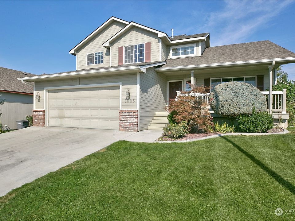 Corner lot with a view! Welcoming front porch with lovely vistas. Open concept kitchen/family room with vaulted ceilings, gas fireplace and an abundance of light. Additional separate gathering space off of front entrance. All bedrooms on upper level for privacy. Private fenced backyard with deck and UG sprinklers.
