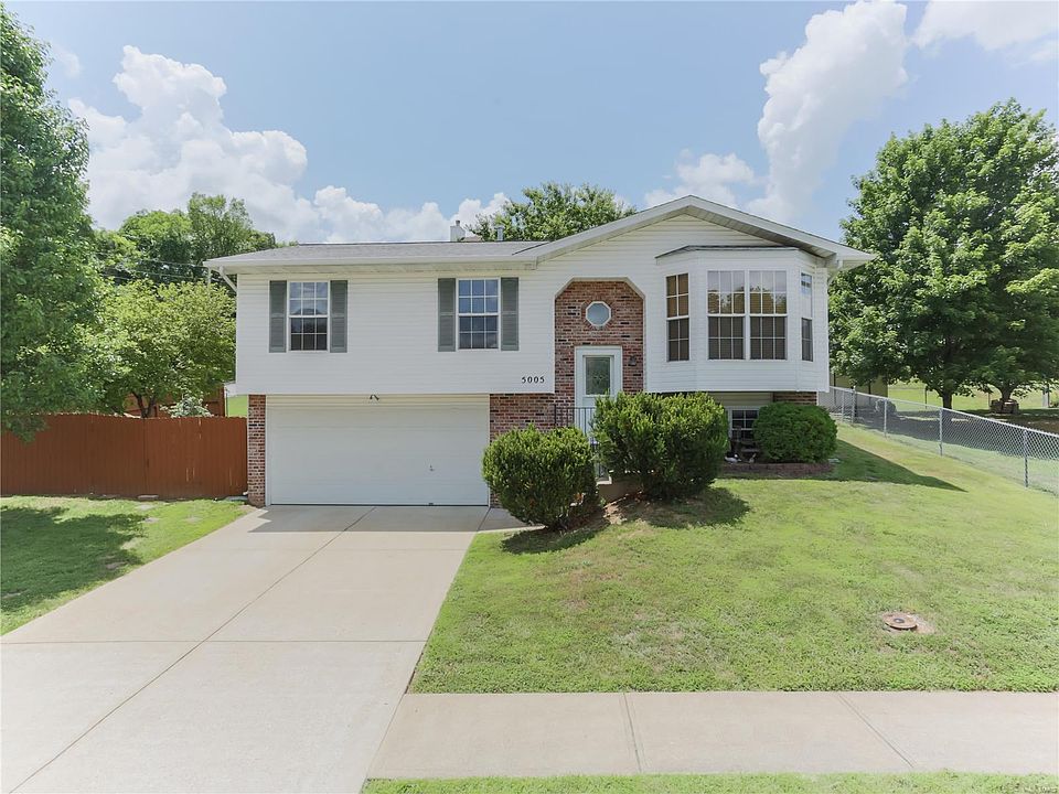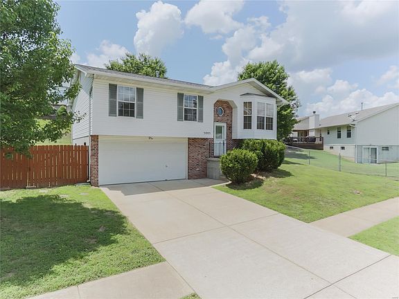 Move Right In to this Meticulously maintained, THREE bedroom, Two FULL bath, Super Split located within the boundaries of Seckman Schools in Owls Nest Estates! Quiet, no-through Cul-De-Sac street, sidewalks, streetlights, Minutes from Hwy 55, shopping, restaurants, Mastodon State Park, & Rec Center! Large Corner Lot, Privacy fence, completely fenced HUGE backyard w/patio-PERFECT for entertaining/playing, & Summer BBQ's. Freshly painted, Vaulted ceilings, open floor plan, Custom cabinetry, New flooring in kitchen, living room, hallway & bedrooms-Roof only 3+/- yrs old, track lighting, all electric home, shade trees, excellent curb appeal, white vinyl siding & brick, landscaped, walk-in closet & full bath in Master Bdrm, & more! Partially finished lower level w/roughed in bath, laundry & 2 large under stair storage areas. 1 year AHS Home Protection Policy provided to new Owner(s). Make an appointment to view Today before it is TOO LATE!