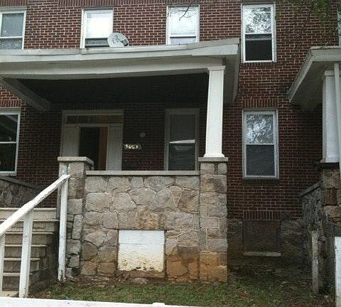 Large 4 bedroom with new floors, 1/2 bath on first floor, parking for one in rear yard. 2 covered front porches at front and rear, also 2 car offstreet parking & Laundry hookups in huge basement. Please go to FRYERDEVELOPMENT.COM to see the video tour. Tenant pays water and BGE. Lease is month to month