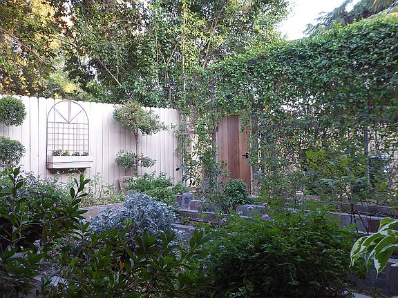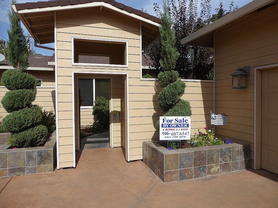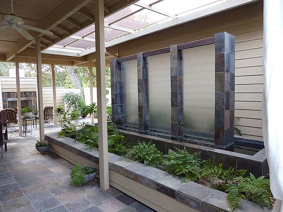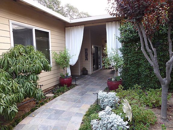 Built in 2004 on a flag lot, this quiet, private, off-street oasis is located down a shared, deeded easement driveway. It is beautifully landscaped with multiple patios, a waterfall fountain, outdoor gas fireplace, and easily accessible raised vegetable garden. This stunning, relaxing yard is all low-maintenance on an automatic drip system and is surrounded by multiple, mature oak trees. Over-sized garage with shelving, sink, and large workbench. RV/extra parking area allows easy turn-around. Wired outdoor security cameras. The large open-concept great room is perfect for entertaining. The kitchen has an abundance of cabinets and counter space, with more in the utility/laundry room/powder room. 10' high ceilings throughout the home add to each room's spacious feeling. The master suite features outdoor access and a massive walk-in closet. This single-story home is located near schools and parks, has easy freeway access, and is move-in ready!