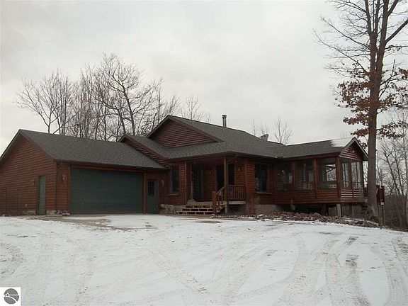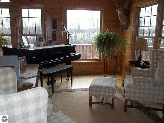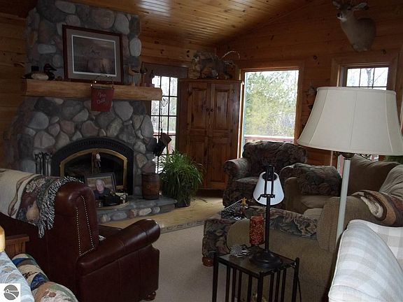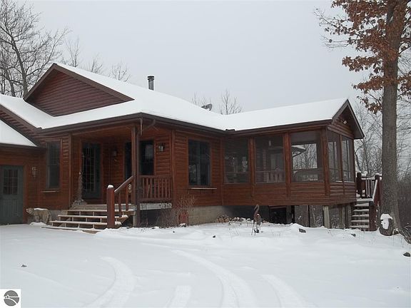 Beautiful log home on 50 acres of wooded property overlooking Au Sable Lake. There is a path to the lake and a dock so you can enjoy the best of up north living - on the water or in the woods. The home is custom built and beautiful inside including a screened porch, solid wood floors and doors, master bath with Jacuzzi and a beautiful stone fireplace in the living room. There are two bedrooms downstairs, a small office/storage space, a family room with access to the outside and a very large craft room. Upstairs you will find a wrap-around porch allowing you to have full enjoyment of the woods. Besides the 24x24 attached garage there is a 30x50 pole building with garage space on the bottom and two large finished rooms upstairs - one currently used for a craft room and the other for a nice family room with bar. This property is too beautiful to describe adequately and must be seen to fully appreciate. If you are looking for the complete up-north experience this is the place for you in every way.