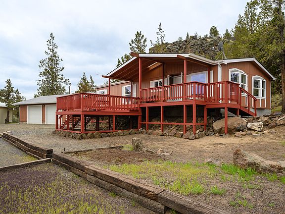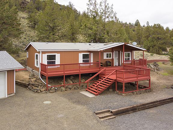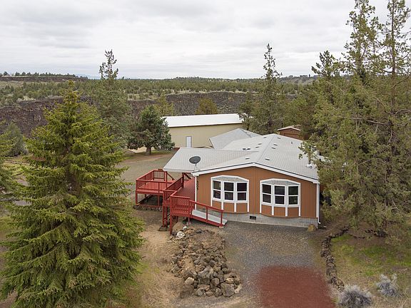 Experience the breathtaking beauty of the Crooked River in this completely remodeled manufactured home that sits on 9+ acres near the end of a secluded street in Crooked River Ranch. Offering stunning expansive canyon and Crooked River views, this 2 BR home features high-end appliances and luxury finishes throughout. The oversized detached 2-car garage along with a huge shop with power and concrete floor make it easy to store an RV or any of your large vehicles or toys. Enjoy the spacious and open living area, tastefully re-designed with modern high end fixtures. The primary bedroom offers ample natural light and stunning views of the surrounding landscape along with a luxurious bathroom complete with a soaker tub. The home's pipes and septic were replaced in 2020. The exterior and decks have just been repainted and the low maintenance landscaping is set and ready to go for it's next owners. Don't miss the opportunity to own this one-of-a-kind property in the heart of Central Oregon.