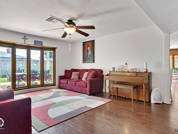 This beautiful and spacious home with 2747 sq.ft. has everything a family could want!! Wood floors throughout most of the home, 2 living areas, 3 bedrooms, family room with brick fireplace and an indoor laundry room with tons of storage. Kitchen has new appliances and an x large sub zero refrigerator. Also, entire house has a soft water system. Upstairs you will be pleasantly surprised to find your own private oasis complete with a pool table, bar and 2 mini refrigerators. Also has a newer a/c upstairs. Don't overlook updated bathroom. Good size backyard with a covered patio and block wall fencing. This home is in great area for shopping, schools and access to freeway with plenty of room for the whole family. Make an appointment today! MOTIVATED SELLER!