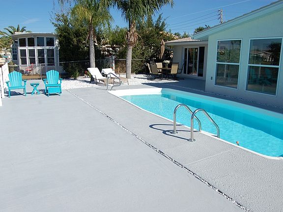 WATERFRONT LIVING AT ITS BEST! This 3 bedroom, 2 bath completely remodeled home features dock, pool and just about everything has been replaced or redone. A beautiful new addition with a pool and water view offers a perfect spot to watch the sunsets. The home has new windows, new tile roof, new floors throughout and much more. The community has a private beach with bathhouse, several individual covered picnic tables, several grills and white sand. There are two private boat ramps and a community building that may be rented for private events. Direct access to the Gulf and just a few short minutes to the islands for more fun. Call today for your private viewing.
