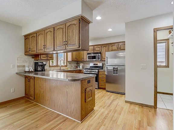 Beautiful move-in ready rambler with a wonderful fully fenced backyard, spacious deck, patio, all with lovely nature views! Only 5 mins from Murphy-Hanrehan Park Reserve, plus close to more parks, dining, shopping, highway access & more. Spacious living room & an open floor plan great for entertaining. Dining with access to the deck & large storage closet. Kitchen offers newer stainless-steel appliances, plenty of storage including walk-in pantry, tile backsplash & breakfast bar seating. Main level Primary bedroom with ensuite bathroom. 2nd main level bedroom & a nicely updated full bathroom. Lower level features an expansive family room with a gas fireplace, walks out to the backyard, plus a wet bar! 2 lower level bedrooms, another full bathroom, laundry, bonus room perfect for a workshop & tons of storage! New carpet throughout home in Aug 2022, exterior painted in 2021, new water softener in 2021, new roof in 2015 & more!