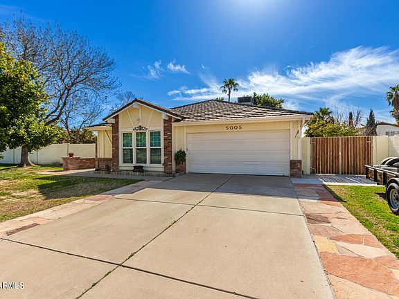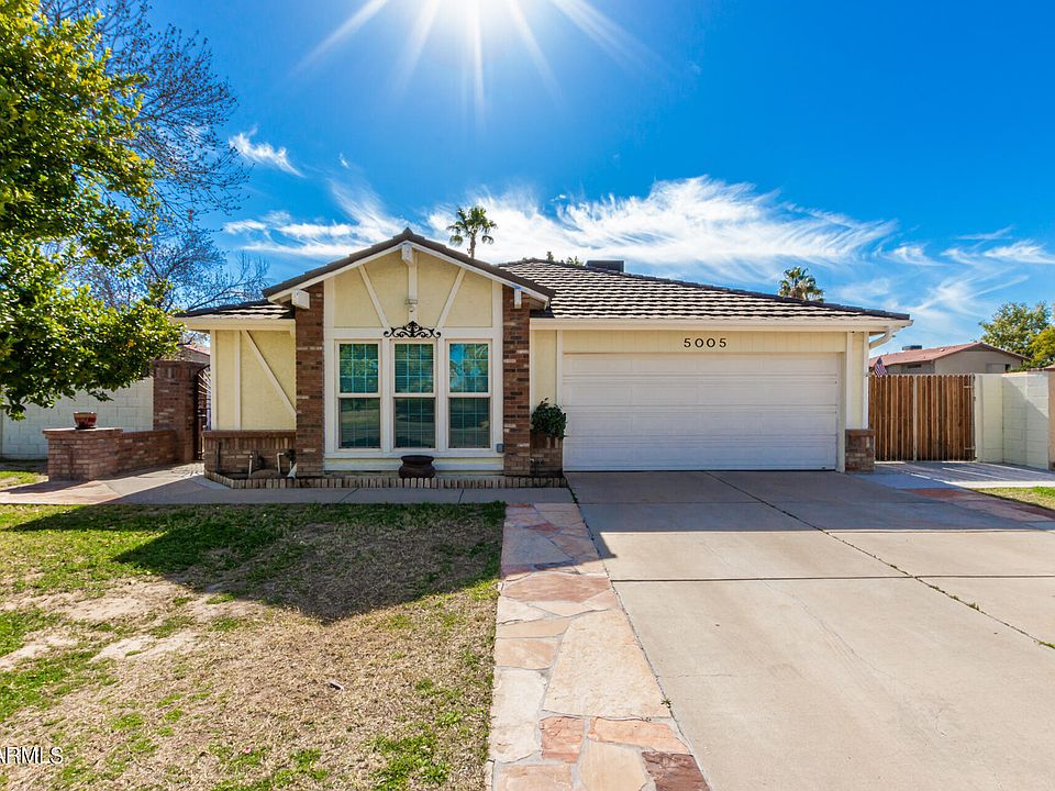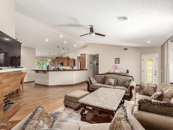 Look no further! This remarkable 4 bed, 2 bath property in Glendale featuring a 2-car garage and RV gate is the one! Come inside to find yourself in a spacious living area offering wood-look flooring, vaulted ceilings, recessed lighting, soothing palette throughout, and a cozy fireplace. The fabulous kitchen boasts a plethora of wood cabinets with crown moulding, granite counters, stainless steel appliances, a pantry, and a peninsula with a breakfast bar. End your busy day in the primary bedroom showcasing a lovely bay window with a built-in seat, a private bathroom, and a walk-in closet. Host fun gatherings in the wonderful backyard including a covered patio, a Ramada, & charming trees! Don't miss out on this one!