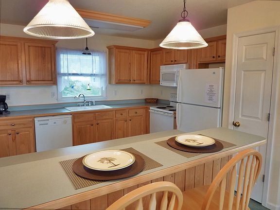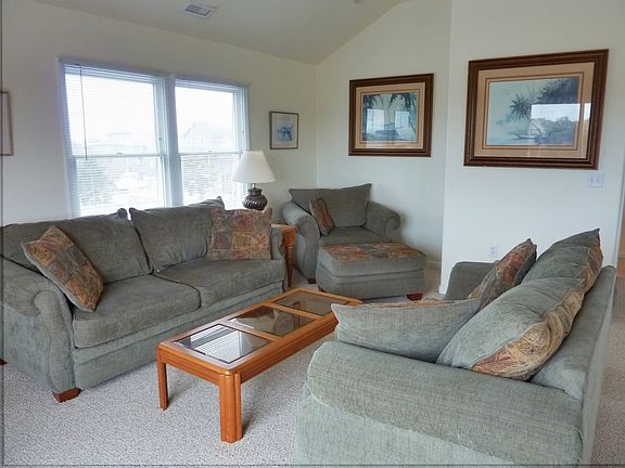 Serenity awaits you at "Carolina Sunset" in the quiet waterfront community of Brigand's Bay. Situated along a deep water canal with direct access to the Pamlico Sound, the bulkheaded lot and PRIVATE BOAT DOCK provides access steps from your back door to boating, kayaking, fishing and more. There is plenty of space for outdoor relaxation amongst the live oaks on the shaded ground level patio or multiple decks offering picturesque canal and sound views. The outside shower with a changing area will be appreciated after a long day on the water or at the beach. The cottage is 3 stories plus a ships watch loft with balcony and sound views. The open concept top level has a half bath, dining area, tiled kitchen with breakfast bar and great room. On the mid level, there are two bedrooms that share a full bath, and a third bedroom with an en suite bath. The lower level game room has a futon, game table and a new flat screen television.