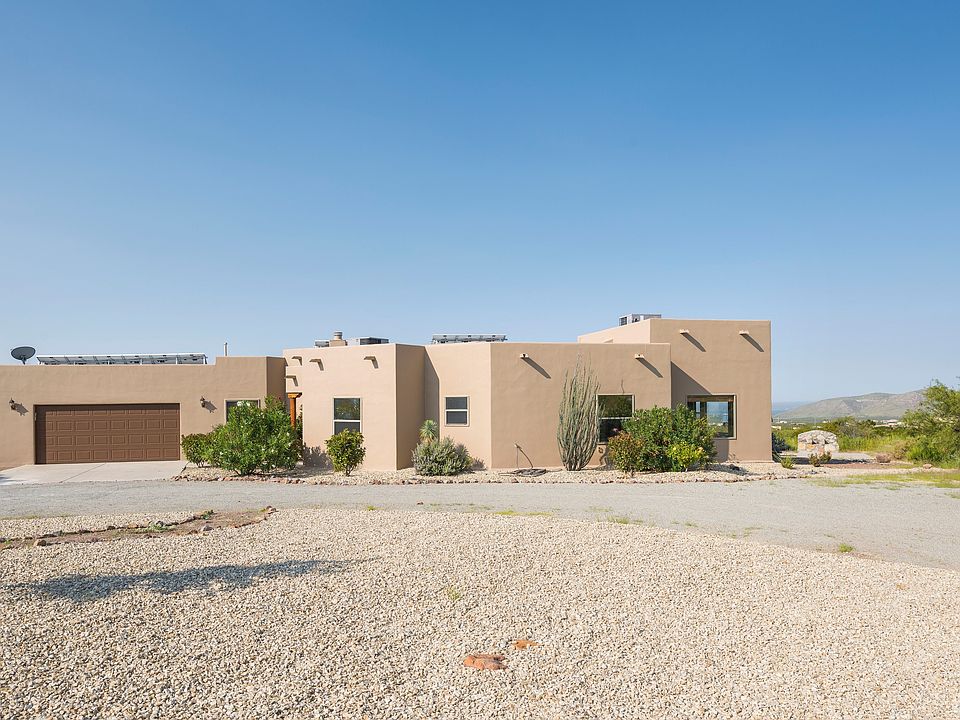 Welcome to this captivating 2-acre oasis nestled at the base of the majestic Organ Mountains. This exceptional solar-powered home offers a harmonious blend of modern amenities and rustic southwestern charm, featuring breathtaking sunset vistas and twinkling valley views that extend as far as the eye can see.