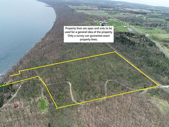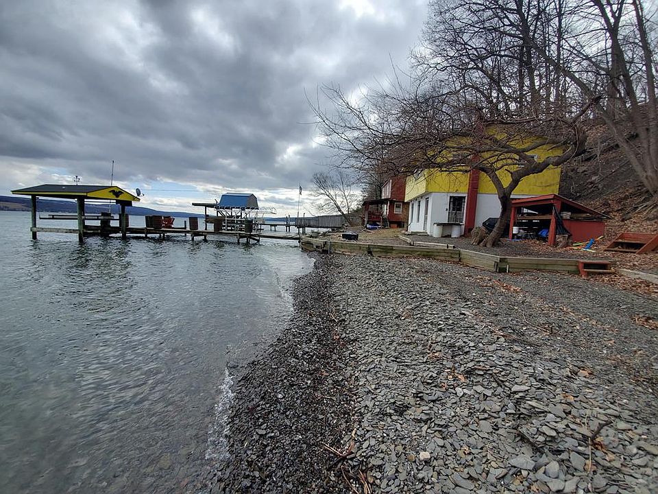 Rare find on Seneca Lake! 17+Acre property with 125' of lakefront! 50+Steps take you down to a seasonal lake level cottage. The cottage is of cinderblock construction with open kitchen, dining, living and full bathroom on main floor. Upstairs is a 2 room sleeping quarters with open ceiling. Permanent Dock, shed, and Boat lift at shoreline. Plenty of building sight opportunities on the property for lake view homes or separate the property for additional home sight with water front. Lots of parking for all your guests! The road to the waterfront is dirt but has several yr round owners at lake.