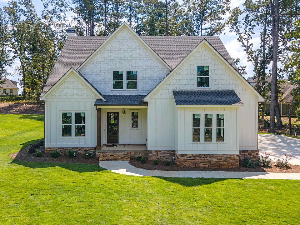 Welcome to this 5 bedroom and 3 bathroom new construction lake access home in the beautiful Logan Martin Lake neighborhood of The Reserve in Pell City. This beautiful custom built home is perfect for entertaining family and friends as they gather in the oversized family room that is open to a chef's dream kitchen complete with a oversized island with a farm house sink, breakfast nook, pot-filler, custom vent hood, and even an outdoor entertainment area on 2 lots which includes a covered patio and a stacked stone fireplace. The primary bedroom ensuite includes a spacious bedroom, a separate floor to ceiling tiled shower, a free standing soaking tub, his/her vanities, and a spacious walk-in closet. Upstairs the family will enjoy having an oversized playroom/bedroom with 2 additional bedrooms and a full bath. There is plenty of level area in the backyard for a pool and room to add a detached garage. Bonus...the lake is just seconds away with the neighborhood boat launch and commons area!