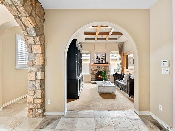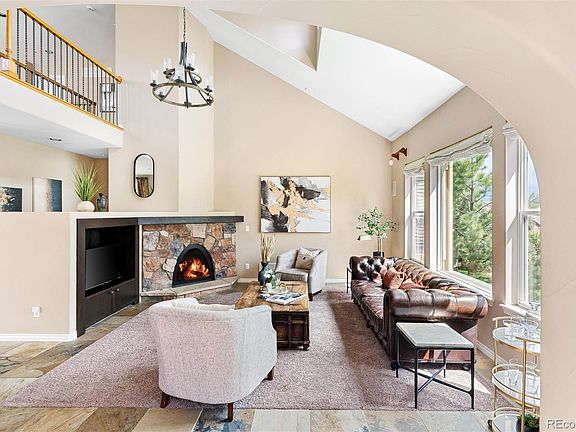 Welcome to the gated Castle Pines Village golf and full amenities community! Home backs up to open space with incredible views creating a sense of privacy and serenity. As you enter the home through the gated courtyard you will find a great space to entertain guests with a gas fireplace. Adjacent to the courtyard is a separate 2 story Casita, a perfect space for additional offices, extra garage or bonus rooms. This space is ready to make your own! The home boasts vaulted ceilings and gorgeous hardwood floors. Enjoy entertaining in the dining room high ceilings and a private outdoor patio. The kitchen has vaulted ceilings and a private balcony where you can enjoy some mountain views and open space/privacy. The kitchen features top-of-the-line appliances, double ovens, brand new Bosch refrigerator and dishwasher. Entertain guests in style where windows flood the space with natural light. The basement is renovated, seller added a bedroom/gym and bathroom making it a complete 2 bedroom, gym (w/bathroom) and movie room. Downstairs walk-out basement has a walk-in storage/pantry, full wet bar/kitchenette area with dishwasher, mini fridge, kegerator and family room with outdoor patio. Retreat to main floor master suite (no stairs!) - complete with 2 showers, 2 water closets (toilets) - a Luxurious 7-Piece Spa-like Bathroom with a soaking tub and 2 large walk-in closets. Upstairs you'll find a private bedroom ensuite with built-in bookshelves, coffee bar/wine cooler and full bathroom with its own soaking tub. This property is LOW-MAINTENANCE, the HOA maintains all the exterior landscaping. Walking distance to the Shops/Restaurants at Happy Canyon, Pool, Playground, Tennis Courts and Rec Center. Come check out what Country Club living is supposed to be! Over 100 Photos & FPs https://clients.architecturalstorytelling.com/5006-Esmond-Ln