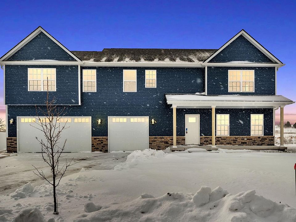 New Construction Ready December 2025! This two story offers 5 bedrooms, 4 baths, a 3 car garage and over 2,800 sq ft of living space! The open concept floor plan on the main floor features a spacious living room, den, dining room with a sliding glass door that leads out onto a patio. The high quality vinyl plank flooring covers the main floor that leads into the eat-in kitchen and offers gorgeous 42 inch soft closing kitchen cabinets and drawers with crown molding, granite counter tops and SS appliances, a pantry, and a 1/2 bath. The second story features a spacious master bedroom with a large walk-in closet and bathroom suite with counter height wood cabinets, under-mount sinks and granite counter top. There are 4 more generous sized bedrooms and two full baths to complete the second floor.PICTURES ARE FROM A PREVIOUS HOME.