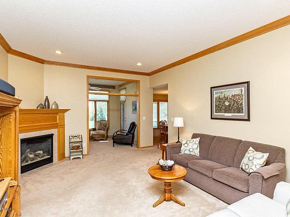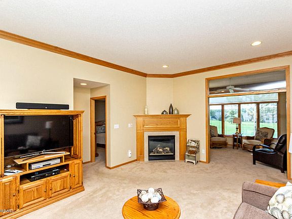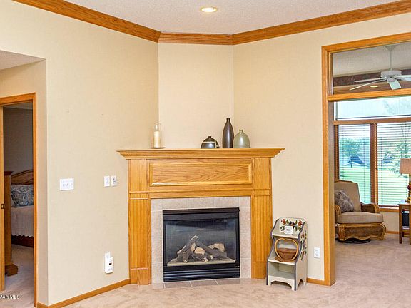 Updated & immaculate main floor living! This kitchen features wood floors, pantry closet, elegant quartz counters & back splash tile, dining area with hardwood floors, 10' ceilings & crown molding in the spacious living area with & gas fireplace, plus a sun room with door to patio. Master offers private bath with shower & walk-in closet. Second bedroom, & full bath. Two-stall garage & storage.