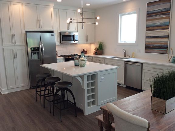 This stunning home in an amazing location will not disappoint with 9' ceilings downstairs & vaulted ceilings in the upstairs bedrooms. Steps to restaurants, coffee shops, pubs & more! A sparkling white open concept kitchen with quartz countertops & GAS stove top. 3 bedrooms & 3 all tile baths. Upstairs 2nd bedroom with deck. GAS fireplace, laundry room with washer/dyer included, back deck & yard with parking area. Primary bedroom is 16 x 15, other bedrooms are 13 x 13 & 12 x 12. FLEXIBLE ON LEASE TERMS. Available Oct. 1. Renter responsible for utilities & yard cutting.