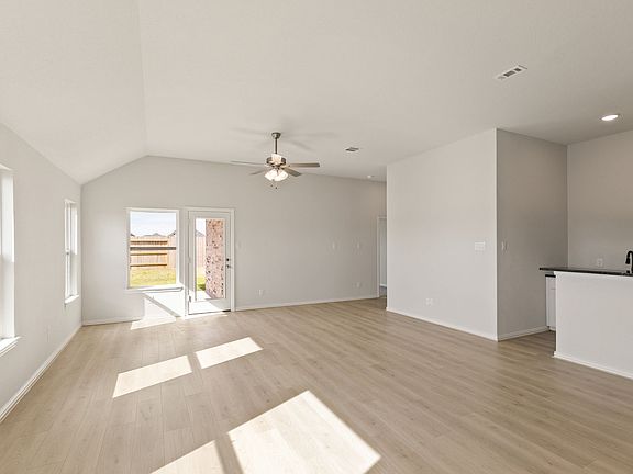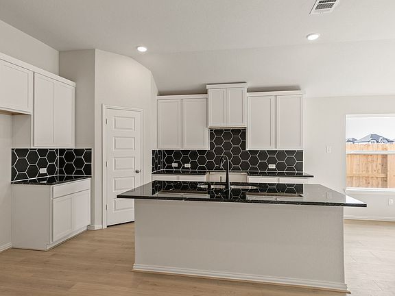 This beautiful new construction home is thoughtfully designed to balance style, comfort, and everyday functionality. The open layout creates a natural flow between the kitchen, dining, and living spaces, making it ideal for both lively gatherings and quiet evenings at home. At the heart of the home, the chef-inspired kitchen is equipped with stainless steel appliances, striking granite countertops, and custom linen cabinetry that combines elegance with practical storage. A spacious island provides additional prep space and casual seating, while the seamless connection to the dining and living areas ensures the kitchen truly feels like the centerpiece of the home. The main living area is further elevated with a built-in wet bar, perfect for entertaining guests or enjoying a relaxing evening drink. Durable laminate flooring runs through the common areas for a clean, timeless look, while tile in the wet spaces adds both style and easy maintenance. The private primary suite is designed as a retreat, offering dual vanities, a relaxing soaking tub, a walk-in shower, and a generously sized walk-in closet that makes organization effortless. Secondary bedrooms are well-placed to provide flexibility for family, guests, or hobbies, and a private study offers the perfect space for work, reading, or creative pursuits. Outdoors, a covered patio overlooks a fully landscaped backyard with sod and a sprinkler system, creating a low-maintenance setting for barbecues, morning coffee, or evening