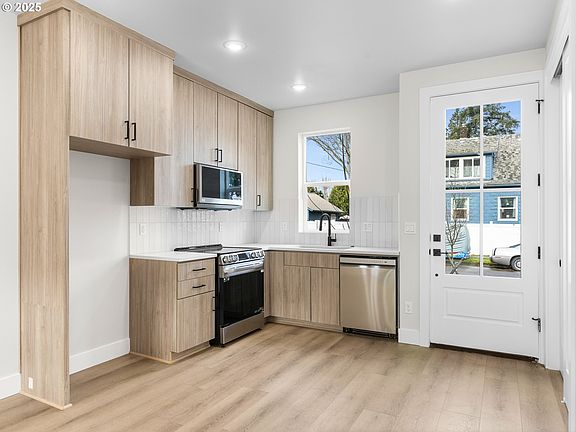 Hey there! I’m your dream home in Portsmouth, wanna be roomies? Impeccable design meets unparalleled convenience! With an incredible 99 BikeScore, I’m just a stone’s throw from coffee shops, restaurants, and more. Plus, the University of Portland is only 1 mile away—talk about the perfect location! Step inside and feel the light pour into my open concept floor plan, seamlessly blending style and functionality. My kitchen is a culinary delight, featuring custom cabinetry, extensive tilework, sleek black finishes, and gleaming stainless steel appliances. It flows effortlessly into my inviting living room, which opens to your own private, fenced yard—ideal for outdoor gatherings on the patio. When it’s time to relax, head upstairs to my spacious primary suite, where you’ll find a breathtaking ensuite. I also come with an additional bright bedroom and bathroom, ensuring comfort and space for all. Enjoy low HOA dues and the peace of mind that only new construction can offer with a 1-year builder warranty from a local boutique builder. Don’t miss your chance to make me yours today! (List price is subject to the buyer qualifying for the Portland Housing Bureau - System Development Charge exemption program to promote affordable housing in Portland—call for more info!)