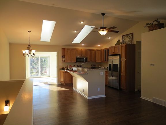 Beautifully remodeled home by Kelbry Properties. Open cathedral ceiling floor plan. Kitchen has granite counter tops. SS appliances beautiful refinished hardwood floor thru out. 1st floor double french doors open to a sun room with heated floors. Master bedroom has private deck. Down stairs is a family room with kitchenette. 2nd bath with an additional bedroom with walk in closet. There is extra space by family room for office space. Freshly painted with new carpet and beautiful landscaping w/ 2 decks. Nothing to do ready to move in.