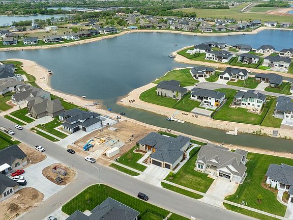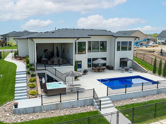 This home is truly special... As soon as you walk in the door you are welcomed with an expansive area boasting high ceilings with wood slant details, an uber-cool retro vibe stacked stone fireplace, a wall of windows that draw your eye out to the pool and boating lake and an absolutely fabulous kitchen with rich navy cabinetry and oversized white quartz island that just begs for family, friends and cocktails. Throughout the home there are 'WoW' features at every turn. The split bedroom plan offers a fantastic primary suite with lake views, a gigantic walk- in closet with built in dressers, main floor laundry, a formal dining area and a home office with front facing windows. All season entertaining due to the spacious covered lanai with gas fireplace and an extra gas line for a future outdoor kitchen, leading out to the hot tub and heated/cooled inground pool ran by a special choline alternative "Healthcare" system and ample patio area for lounging in the sun. In the evening, after s'mores on your own sandy beach head out for a sunset cruise around Sandcrest's 40 acre lake. You will forget you are in a basement with the high ceilings, windows galore and the walk out to the main pool level. The bar is conveniently located right inside from the pool area making entertaining a breeze. Sandcrest is a special neighborhood located in Maize school district, and though off the beaten path is a quick jump onto HWY96 for easy access all over town and is just 4 miles from the ample dining and shopping options of New Market Square. Sandcrest offers a boating lake, 2 neighborhood pools, pickle ball, a soccer field & a large clubhouse.