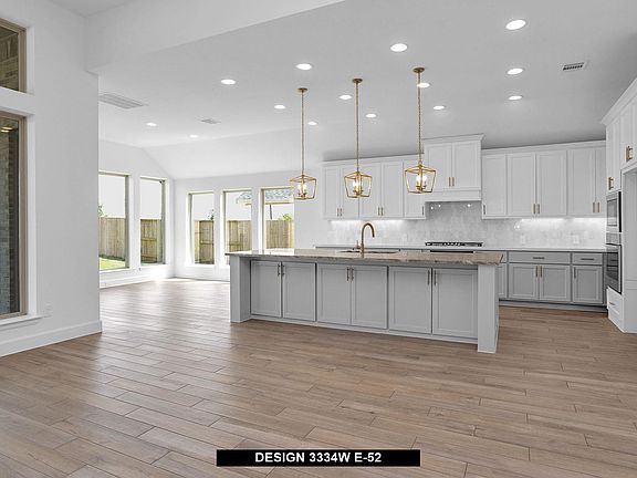 Welcoming entry framed by home office with French doors. Spacious game room with French door entry. Spacious family room features a wall of windows and a wood mantel fireplace. Island kitchen with built-in seating space, two wall ovens, 5-burner gas cooktop and a walk-in pantry flows into the dining area. Primary bedroom with a wall of windows. Primary bath features French doors, dual vanities, two walk-in closets, two linen closets, center garden tub and a separate glass enclosed shower. Secondary bedrooms joined by a Hollywood bathroom. Private guest suite with a full bathroom and walk-in closet near front of home. Extended covered backyard patio. Utility room and mud room just off the four-car garage.