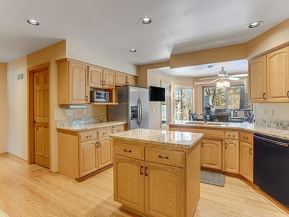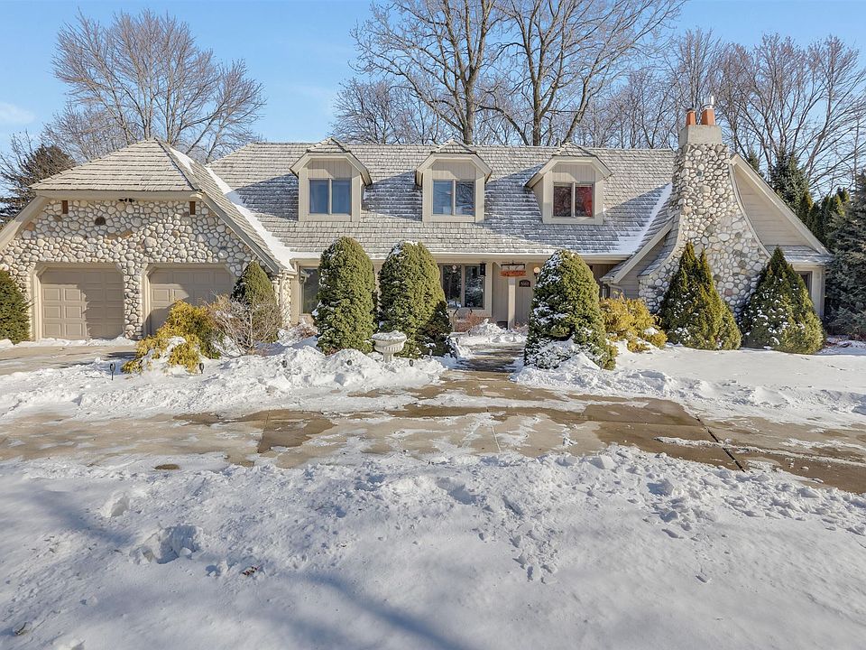 Exceptional quality built Wind Point Cape Cod features large open floor plan, Kitchen with hardwood floors, granite counters, stainless appliances, pantry, breakfast bar and dinette area leading to outside deck. Living room with stone gas fireplace leading to spacious family room, dining room, office or 5th bedroom and first floor laundry. Upstairs offers a Master suite with whirlpool tub, shower and large custom walk in closet, 3 additional bedrooms with walk in closets and full bath. Expansive finished lower level - spacious family room, full bath, exercise and game room. Exterior Circular drive, 3-car garage, gorgeous landscaping, mature trees, large deck, enjoy nature and evenings by the outside stone fireplace, gazebo and shed. This beautiful home is sure to impress! Call today!