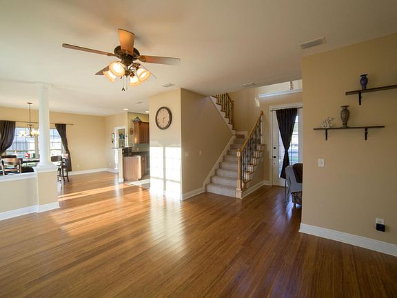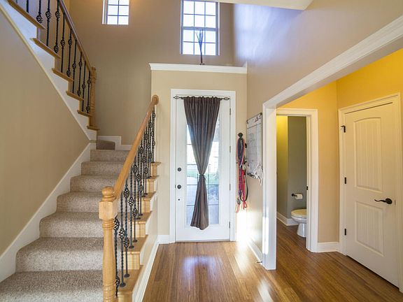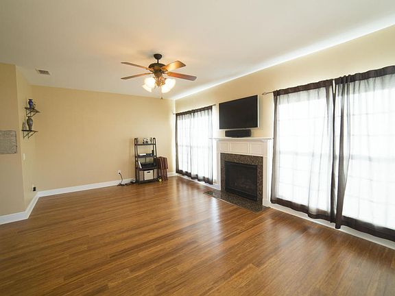This beautiful brick home is move in ready! Bright entry opens into the living room with 1/2'' carbonized bamboo hardwood floors, gas fireplace with granite inlay, dining area open to living room and kitchen, and tinted windows throughout. Kitchen features granite countertops, gas stove/oven, and raised panel cabinets. 1/2 bath for guests off of the entry. Master bedroom is located on the 1st floor with hardwood floors and a trey ceiling. Master bath features a double vanity, jacuzzi tub, separate shower, wake in closet, and tile floors. The 2nd floor consists of 2 nice sized bedrooms and a full bath. Fresh paint thought, sealed garage flooring with Epoxy, LARGE backyard, cedar fencing, Zoiza sod, eco flush toilets, 12 yr rubber mulch in flower beds, and french drain with down spout pipin