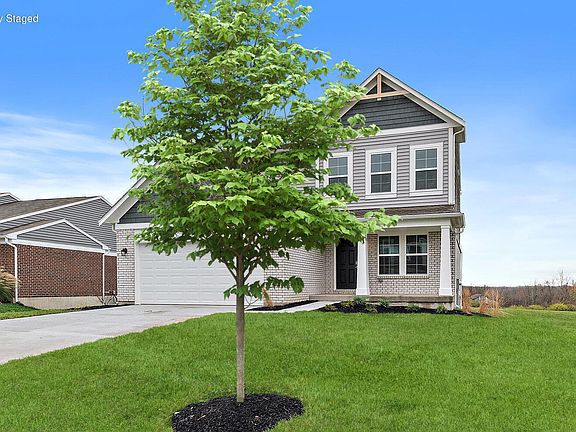One or more photos was virtually staged. Gorgeous new Wesley Western Craftsman plan by Fischer Homes in beautiful Hunters Ridge featuring a private 1st floor study with double doors. Open island kitchen with stainless steel appliances, upgraded cabinetry with 42 inch uppers and soft close hinges, quartz counters, pantry and walk-out morning room to the large deck and all open to the spacious family room. Primary suite includes an en suite with a double bowl vanity, walk-in shower and walk-in closet. Two additional secondary bedrooms each with a walk-in closet, a centrally located hall bathroom and spacious loft. Full walk-out basement with full bath rough-in and a 2 bay garage.