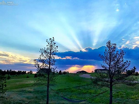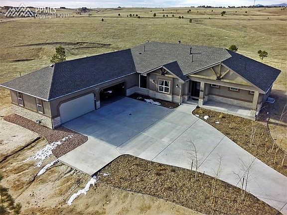 WOW! This custom 3 year old ranch home has it all ! Including an oversized 4 car garage. Beautiful views of the mountains from rear of home and of the countryside from the front. Large open floor plan main level with floor to ceiling double sided stone fireplace between Great Room and Kitchen. Kitchen is a chefs dream with new accent slab granite island, 36" Bosch gas cooktop, double ovens, backsplash etc. A covered no maintenance deck that you will not believe that spans nearly the entire main level. Finished walkout basement with enormous bedrooms, large Family Room and two additional baths. One of the bedrooms in the basement is a second master suite with ensuite bath. Located in a neighborhood of luxury homes in a quiet peaceful setting. Close to schools, dining and shopping. Wait till you see the sunsets!!! Unobstructed views of Pikes Peak from every window on the back of home (even the basement). Very large concrete patio with included 6 person top of the line hot tub. Seeding of lot was recently completed. Move in ready. Enjoy the four large bedrooms, each with walk-in closet.