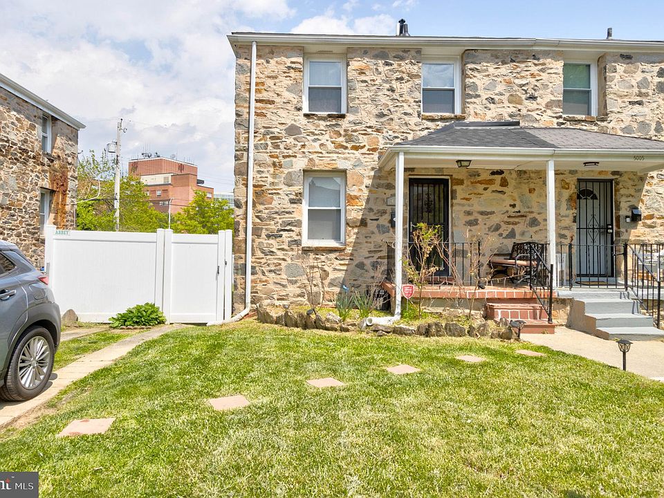 Great Opportunity to own this unique Stone semi-detached home minutes from I-83 and Downtown Baltimore. Completely remodeled kitchen with granite counter tops, stainless steel appliances, ceramic backsplash. Modern pendent lights above large kitchen island with extra storage and separate elegant dining room. Crown Molding accents living room with gleaming hardwood floors. Newly renovated (2023) fully Finished basement with space for potential 4th bedroom or family room and ceramic full bath with glass tile accents. Perfectly fenced yard for entertaining or Summer fun off enclosed rear patio. Roof replaced in 2021, Fridge 2020, HVAC 2015 & Hot Water heater, 2015 French Drain System installed by previous owner. This won't last long.
