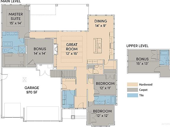 - Bath-Master, Bed-Master Main Level, Split Bedroom, Great Room, Rec/Bonus, Double Vanity, Central Vacuum Plumbed, Walk-In Closet(s), Pantry, Kitchen Island, Granit/Tile/Quartz Count, Number of Baths Main Level: 2, Number of Baths Upper Level: 1, Bonus Room Size: 14x14, Bonus Room Level: Main