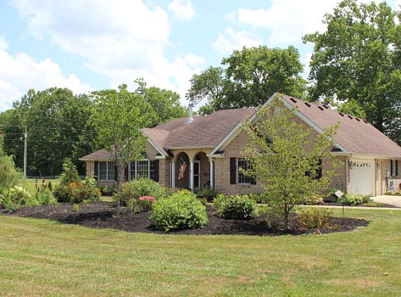 Gorgeous setting with amazing landscaping and a beautiful interior! This all brick home has wonderful outdoor living space complete with a waterfall, wood cathedral ceiling in the screened-in back porch, deck, patio with built in fire pit looking onto an immaculately landscaped yard surrounded by mature trees. The elegant formal dining room with tray ceiling, hardwood flooring and palladium windows accesses the eat-in kitchen with quartz countertops, cherry cabinets, kitchen bar and tile flooring. What a welcoming Family Room with a tall stone fireplace, hardwood flooring and cathedral ceiling! The Owner's Suite is large featuring a tray ceiling, whirlpool tub, cherry vanity, shower and tile. This home is move-in ready!