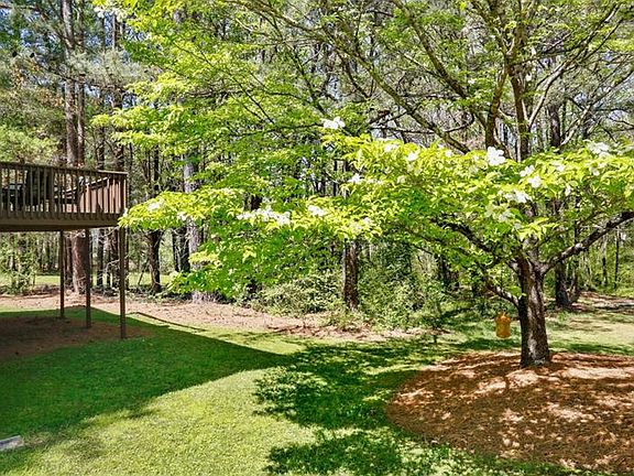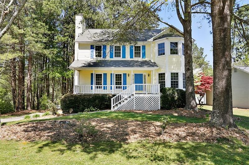 Welcome home to this charming Southern home walkable to swim/tennis and in Highly Sought-after schools! Rocking chair front porch, huge private lot, and renovations done to kitchen and all 3 baths! Windows replaced, roof is newer too! Kitchen offers large prep island + breakfast area and opens to great room with fireplace. Separate formal living & dining rooms open to each other. 3 separate bay windows on this home. Master bed offer large room, double vanities in bath & walk in closet. Grill out on your back deck and enjoy wooded privacy.