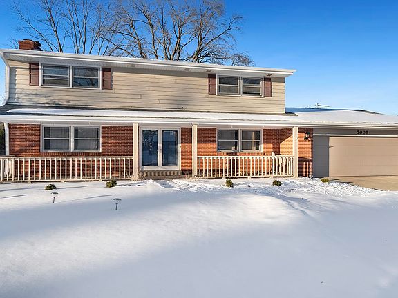 This spacious four-bedroom home features a welcoming covered front porch and a functional layout. The first floor offers a generous living area with a fireplace flanked by built-in bookcases, a well-equipped kitchen with ample cupboard and counter space beneath a skylight, and a dining room with doors leading to a patio and fenced backyard. A half bathroom and a convenient first-floor laundry room add to the ease of living. Upstairs, four comfortable bedrooms share a full bathroom. The lower level, ready for finishing, includes another fireplace and a half bathroom. Storage is abundant with hallway closets throughout. An attached two-car garage provides direct access. Thoughtfully designed for comfort and practicality, this home offers versatile spaces and room to grow. Located in a central area with convenient access to I-90! Roof was replaced in July 2024. Agent Owned!