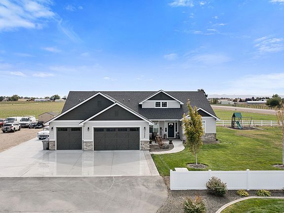 Stunning custom home in a small and private community with magnificent views. This Gem offers top of the line quality inside and out. Home features granite and quartz countertops, beautiful custom cabinets, large island, double ovens, and living area overlooking the Owyhee mountains! The master bedroom is spectacular! Youll love the extensive tilework throughout master bath to the private patio. The open great room features an inviting fireplace with custom built-ins on both sides. Impressive extra-large windows allow for natural light and great views. Large lot offers plenty of room for a RV parking, garden area, and all you toys. Custom landscaping with high yield well.