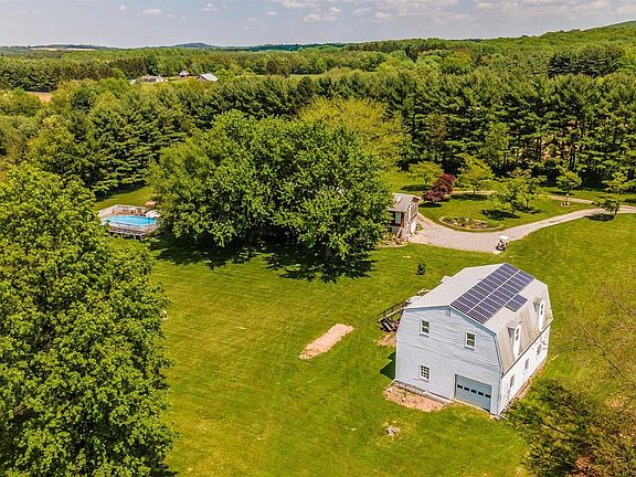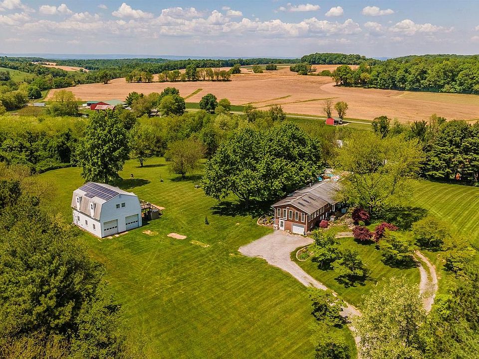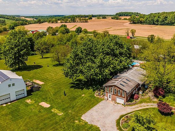 Gorgeous, flat, and open 5+ acres completely fenced and tree lined for privacy. 4 bed 1.5 baths with large family room, solar panels (owned), 19x32 ft heated pool, hardwood floors, large deck, fully constructed basement bar w/ draft system, wood stove, SS appliances and washer/dryer included. Best of all is a detached 4+ car garage complete with compressor and full car lift. Above the parking is a fully enclosed storage area accessible by side steps. This property is a rare gem ready for you to move in. Owned Solar panels provide a monthly rebate for the owner as well as heat the pool when you want.