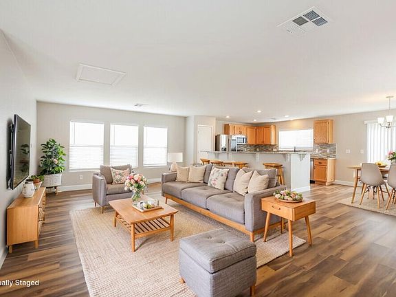 Please note, our homes are available on a first-come, first-serve basis and are not reserved until the lease is signed by all applicants and security deposits are collected. This home features Progress Smart Home - Progress Residential's smart home app, which allows you to control the home securely from any of your devices. Want to tour on your own? Click the "Self Tour" button on this home's RentProgress. Some images have been virtually staged to help showcase the potential of spaces in the home. The furnishings shown are for illustrative purposes only and are not included in the home. Explore this pet-friendly, two-story rental home in Las Vegas, NV featuring four bedrooms, two and a half baths, and a two-car attached garage. After parking your vehicle in the garage, navigate the utility room into the downstairs family room. Then ascend the stairs to the main living floor and easily entertain guests from the open living room, dining area, kitchen, and half bathroom. The kitchen features stainless steel appliances, granite countertops, an island, and a spacious pantry for the serious cook. Enjoy the view of the brick-fenced-in backyard from the balcony. Relax in the primary suite with its huge walk-in closet, private bathroom with soaking tub, walk-in shower, and dual vanity sinks. You will find the other three bedrooms and a shared bathroom just off the family room downstairs.