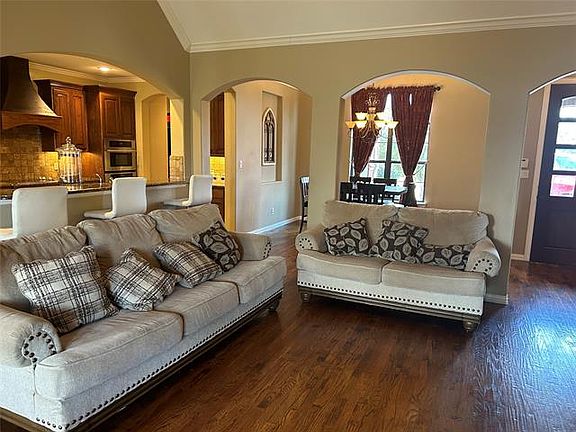 Lovely Home in Preston Club Estates. If you like to cook and visit with family, this is the home for you, chef's kitchen overlooking 2 dining areas and cozy living area. Sit at the counter and enjoy wine while you watch the chef! Wood paneling, gorgeous wood floors throughout. Spacious home has 4 bedrooms and 2 full bathrooms and a powder room. Primary bedroom has ensuite with jetted tub, separate walk-in shower, his and hers vanities, and very large walk in closet. The 4th bedroom could also be a library or flex room if needed with build in book shelves and closets. Side entry garage and a lot of extra parking space. And this home has a view of the private lake at Preston Club Estates from the back and side yard. Great place for a picnic with the family!! Call your favorite Realtor and go see this place.