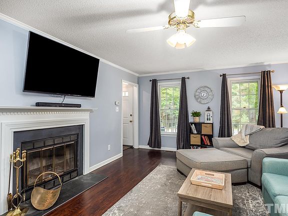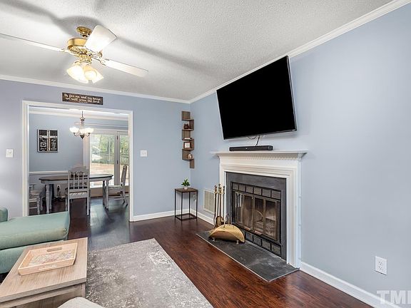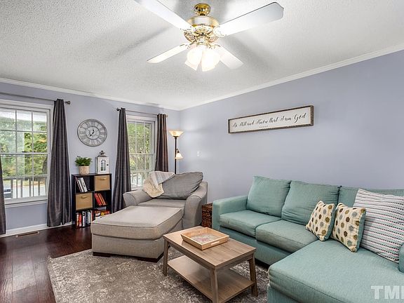 This wonderful Woodcroft charmer will impress you on arrival with a full, covered front porch, new (2019) vinyl floors in the living, dining and kitchen areas, First Floor main bedroom/ en-suite bath - everything you need on one level! Upper level features two bedrooms - CLOSETS GALORE - and full bathroom. Large, recently painted deck anchors the FENCED backyard. Home Warranty included with acceptable offer. Nearby Trails connect to miles of greenway and American Tobacco Trail.