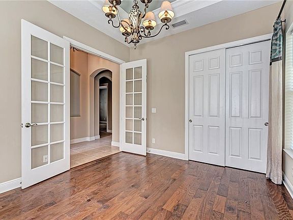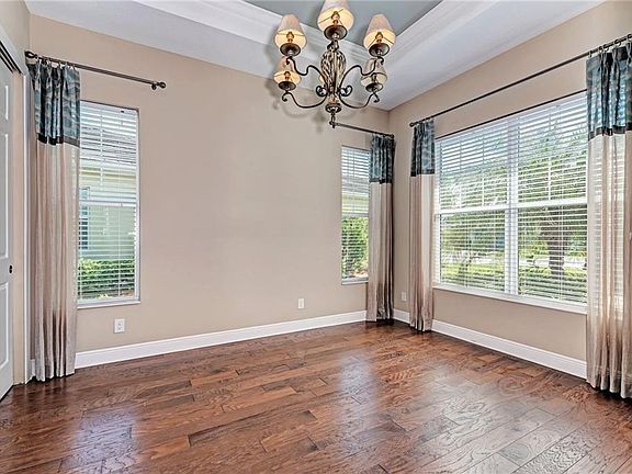 - Interior Features: Cathedral Ceiling(s), Ceiling Fans(s), High Ceiling(s), Crown Molding, Walk-In Closet(s), Window Treatments, Open Floorplan, Solid Surface Counters, Solid Wood Cabinets, Stone Counters, Tray Ceiling(s), Pest Guard System