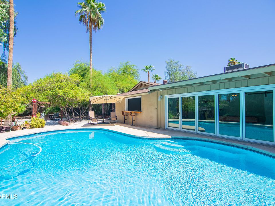 Welcome to your dream home, on a HUGE lot, in Scottsdale! This stunning 3 bedroom, 2 bath plus PRIVATE DETACHED OFFICE property is conveniently located just 8 minutes from Old Town! Step inside and discover an interior that has been updated throughout, featuring porcelain tile flooring and updated finishes that give the home a sleek and modern feel. The open concept kitchen is a chef's delight, complete with stainless steel appliances and plenty of counter space to prepare your favorite meals. Sliding doors fully open to your backyard oasis complete with a giant heated pool, pergola, firepit, and covered patio. You are steps away from the green belt, 1 minute to the freeway, all while being on a quiet cud-a-sac that feels like you are away from it all!