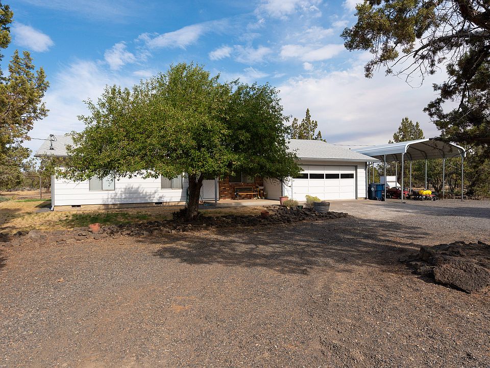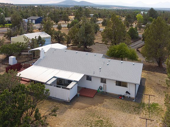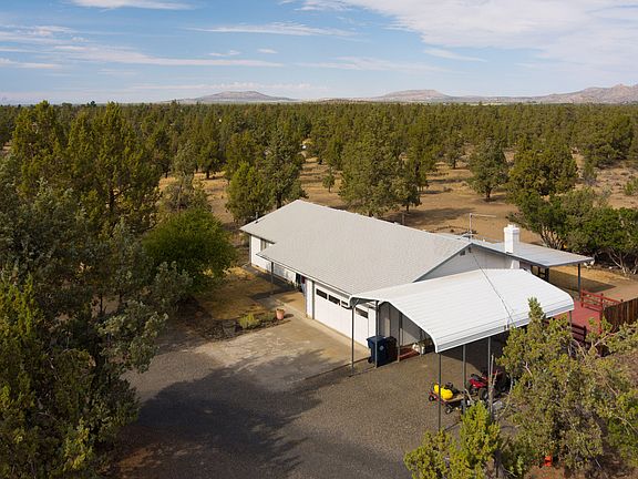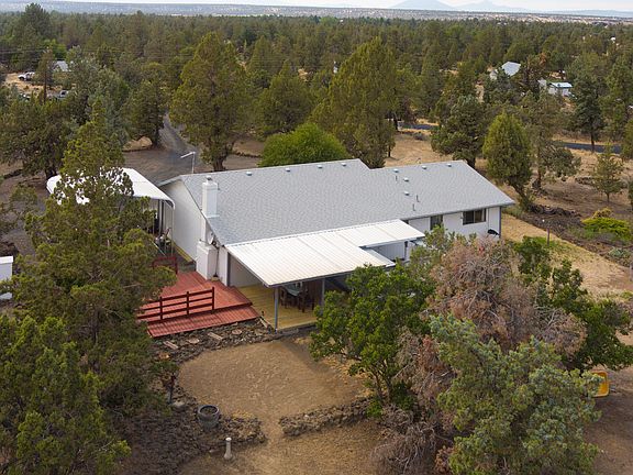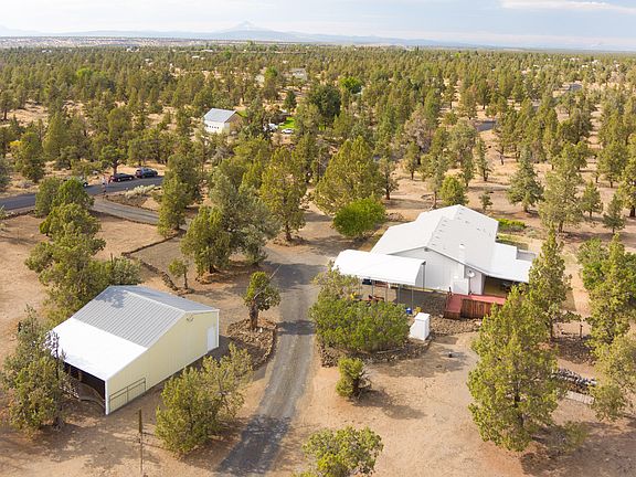 Enjoy life and all of your hobbies on this just out of town 4.68 acre parcel is Redmond's desirable Tetherow Crossing. This charming 1977 home on a paved road has an attached oversized 2 car garage along with a 672 sq. ft shop with 2 bays and a workshop area and plenty of driveway parking that can easily handle multiple vehicles and RV's. Behind the shop is a fenced pasture and 2 lean-to stalls for horses. This beautifully landscaped property backs to more than 5000 acres of public land giving you serenity generally not available at this price point. The home interior has a ductless heat pump with comfort in every room and an upgraded newer water heater. The newer fridge is included in the purchase along with the washer and dryer. The backyard covered patio area is made for entertaining and you're sure to be sitting pretty just 10 minutes outside of downtown Redmond.